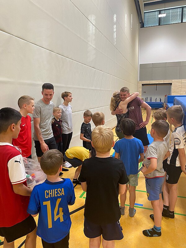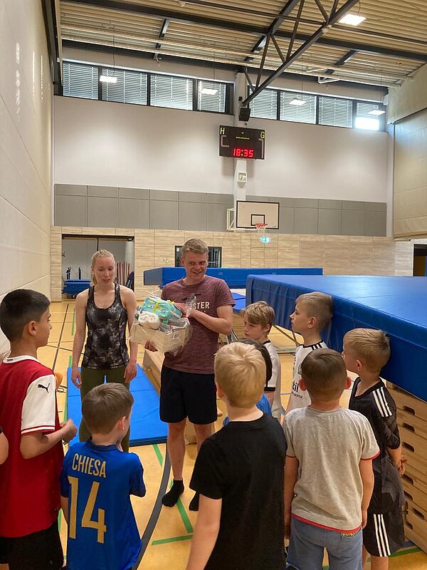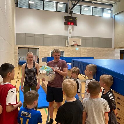 Hierfür versammelten sich alle Jungs in der Halle, um im Beisein der Abteilungsleiterin, Merle Brückner, eine kleine Aufmerksamkeit zu überreichen und sich für die gemeinsame und lehrreiche Zeit zu bedanken!