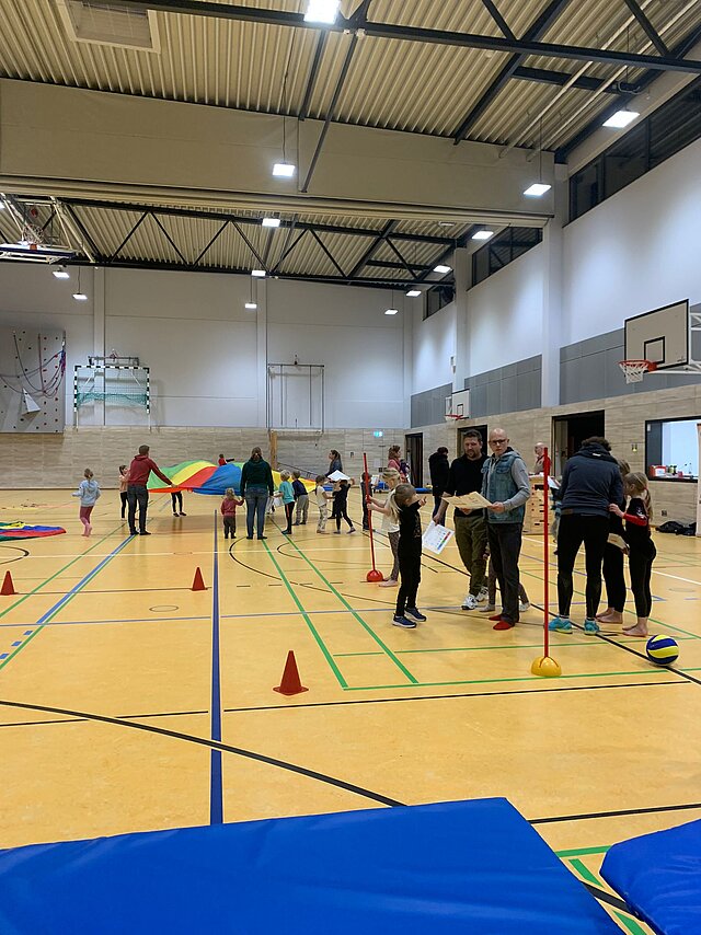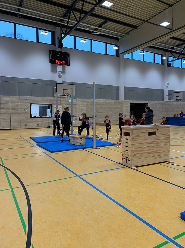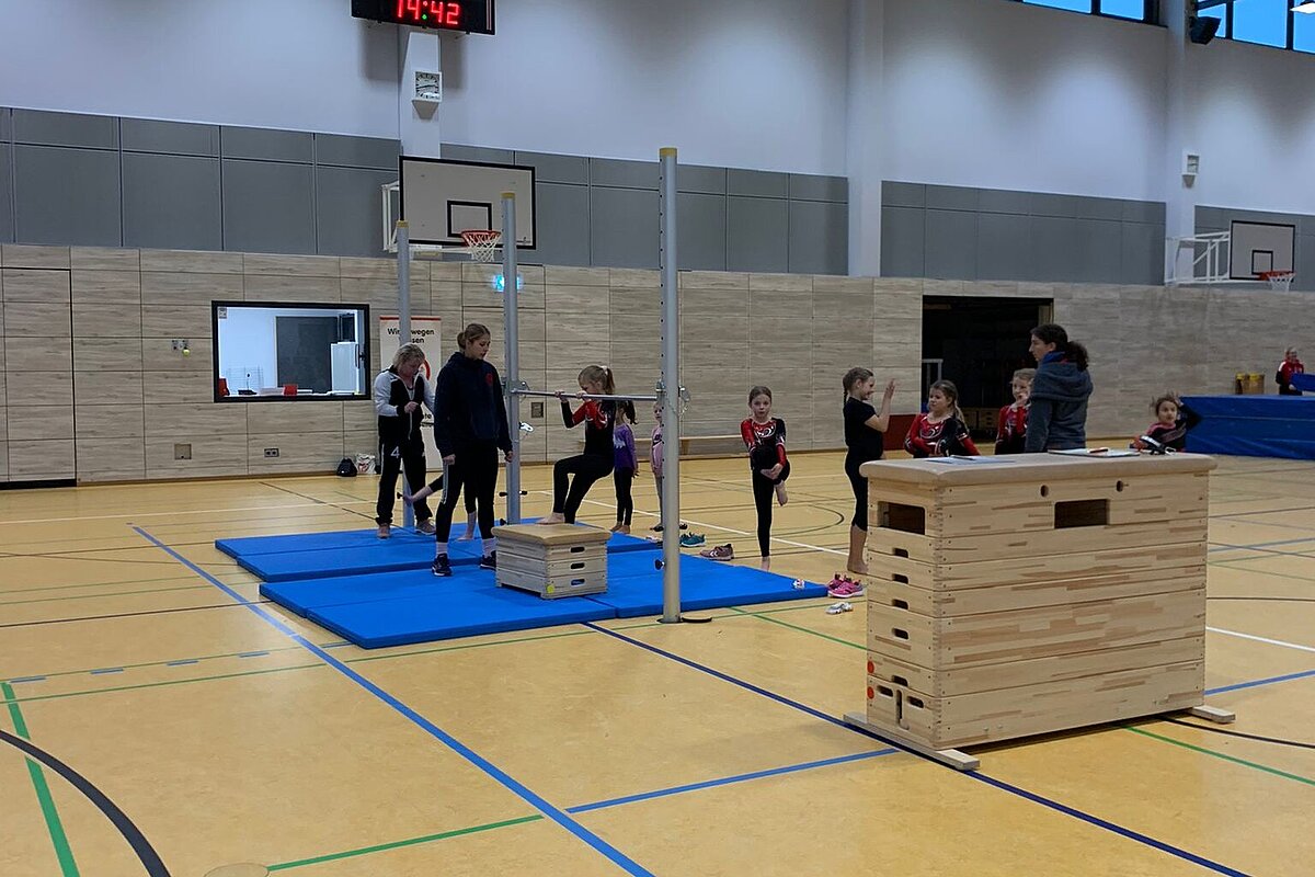 Und so probierten und testeten knapp 70 Kinder an verschiedenen Stationen ihr Können, um möglichst viele Punkte für das Bestehen des Abzeichens zu sammeln. Mal war es eine anspruchsvolle Sprungfolge auf dem Airtrack, mal ein Fangspiel während auf einer Turnbank balanciert wurde und mal eine Übungsabfolge an einem frei gewählten Turngerät. Während dessen wurden alle Teilnehmenden fleißig von ihren Eltern, ihren Geschwistern und anderen Familienangehörigen angefeuert und deren Leistungen bestaunt.