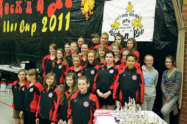 Am 30. Oktober fand zum 11. Mal der Aller-Cup in Winsen (Aller) statt. Schon Wochen zuvor wurde im MTV „Fichte“ Winsen (Aller), in der Abteilung und dem Vorstand, eifrig auf diesen einen besonderen Tag hingearbeitet, denn schließlich sollten sich die Tänzerinnen und Tänzer aus ganz Deutschland in der Sporthalle am Friedhofsweg wohl fühlen. Mehr als 300 Besucher folgten an diesem Samstag der Einladung der Rock'n'Roll-Abteilung (RRA). Insgesamt gingen für das beliebte Turnier an der Aller 125 Meldungen ein. Die „Crazy Birds“ stellten 12 Paare und eine Formation mit dem Ziel, möglichst viele der begehrten Pokale in Winsen zu halten. Nach der Eröffnung durch den MTV-Vorsitzenden Florian Hemme und den 2. MTV-Vorsitzenden Gunther Menzel, die beide ein Grußwort hielten, konnte der 11. Aller-Cup beginnen. In der Klasse Schüler 1 gingen drei Paare des Ausrichters an den Start. Alina Wendt und Riina Bode, die das erste Mal auf einem Turnier tanzten, erreichten den 26. Platz. Die Paare Mona Grünewald/Sofie Schleife und Joanna Henning/Caroline Thies tanzten sich durch die Zwischenrunden in die begehrte Endrunde und erreichten am Ende den 6. und 5. Platz.