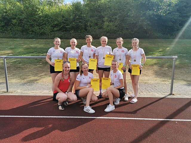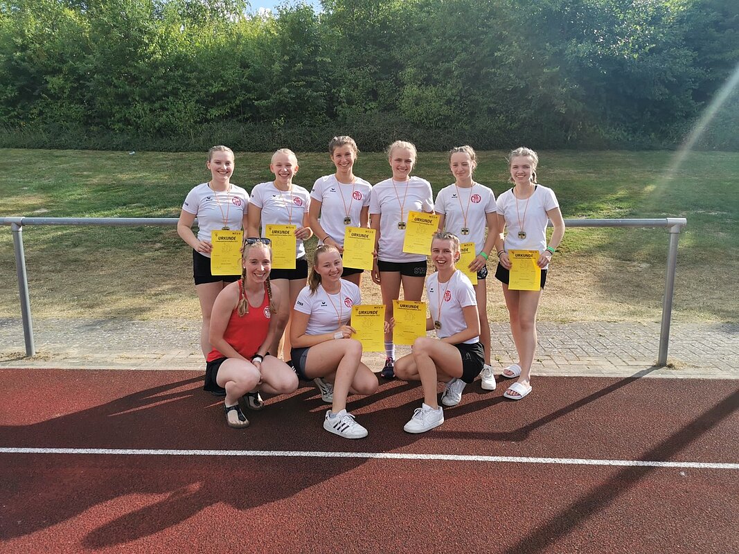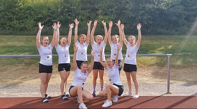 In den frühen Abendstunden erfolgte die Siegerehrung aller Teilnehmenden unter freiem Himmel. Mit insgesamt 26,60 Punkten erreichte unsere TGW-Mannschaft erstmals eine Treppchen-Platzierung und freute sich riesig über die gewonnene Bronzemedaille. Herzlichen Glückwunsch an Kira Grohmann, Alessia Kratz, Cindy Pöppich, Sophie Raschke, Sina Rybakowski, Tessa Schaarschmidt, Isabel Schauer und Enya von Bostel!