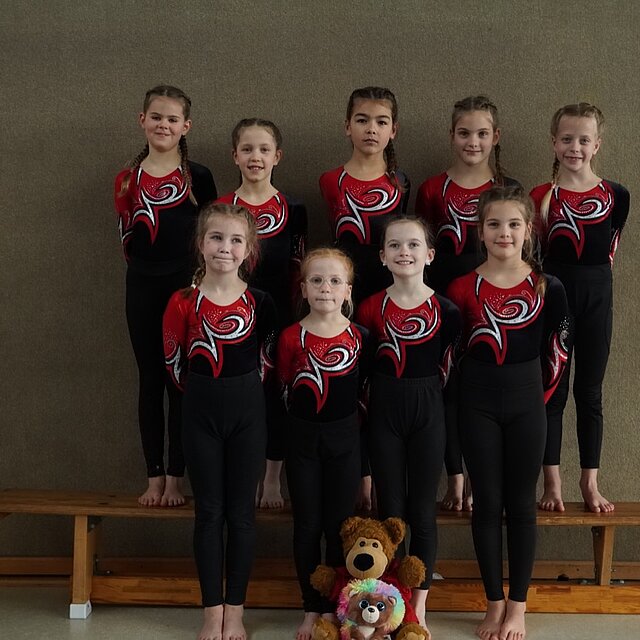 In Begleitung ihrer Trainerinnen wollten Theresa Machleb, Nele Werner, Viktoria Riechmann, Clara Albrecht, Carolin Friedrich, Elisa Hermmerling, Enna Tybussek, Anne und Elise Wunderlich am heutigen Tag ihre turnerischen Fertigkeiten vor den Augen des Kampfgerichts und der mitgereisten Fans unter Beweis stellen.
