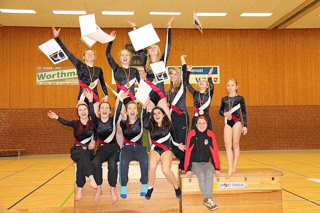 Am Nachmittag ging es dann für die zehn Kürturnerinnen an den Start, welche sich ihre Übungen selbst zusammenstellen können. Der Nachmittag war sehr erfolgreich für die Winser Mädchen, denn sechs von Ihnen landeten auf einem Treppchenplatz.