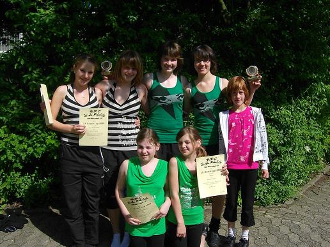Alina und Julia, die in der letzten Zeit sehr viel und hart trainierten, belegten den 3. Platz. Dieser Erfolg der beiden lässt auf weitere gute Turniere hoffen. Und auch diese Freude wurde mit in die Landesmeisterschaft der Formationen genommen, die gegen 16 Uhr anfing. Hier starteten die" Crazy Ladies" in der Klasse Freedance. In der Breitensportwertung erreichten sie den 3. Platz und freuten sich so unbeschreiblich doll. Alle wollten auf dem Treppchen stehen.