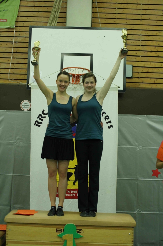 In der Klasse Junioren 1 gingen Kerstin Weber und Shanice Fendt an den Start. Auch die beiden erreichten die Endrunde und zeigten ihr ganzes Können. Doch leider landeten sie auf dem ärgerlichen, aber trotzdem guten 4. Platz. Allerdings durften die beiden dann doch noch auf den 3. Treppchenplatz, da sie den 3. Platz in der Gesamtwertung erreicht haben.