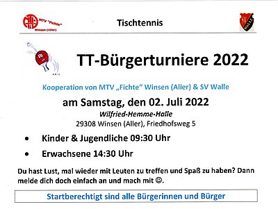 Tischtennis Bürgerturnier 2022